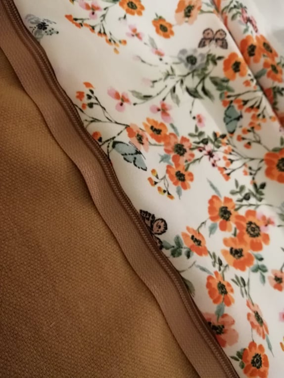 Ai cusut prima parte a portfardului; acum urmeaza sa cosi pe fermoar celelalte doua bucati de material ramase.